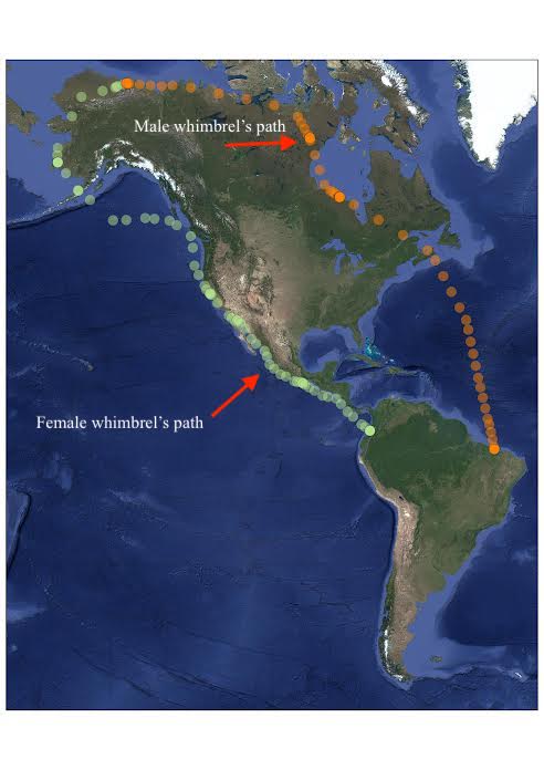 Before Schulte found the mated pair that migrated via different ends of the continent, biologists thought that whimbrels that went east in fall might have been a different subspecies than the birds that headed west.