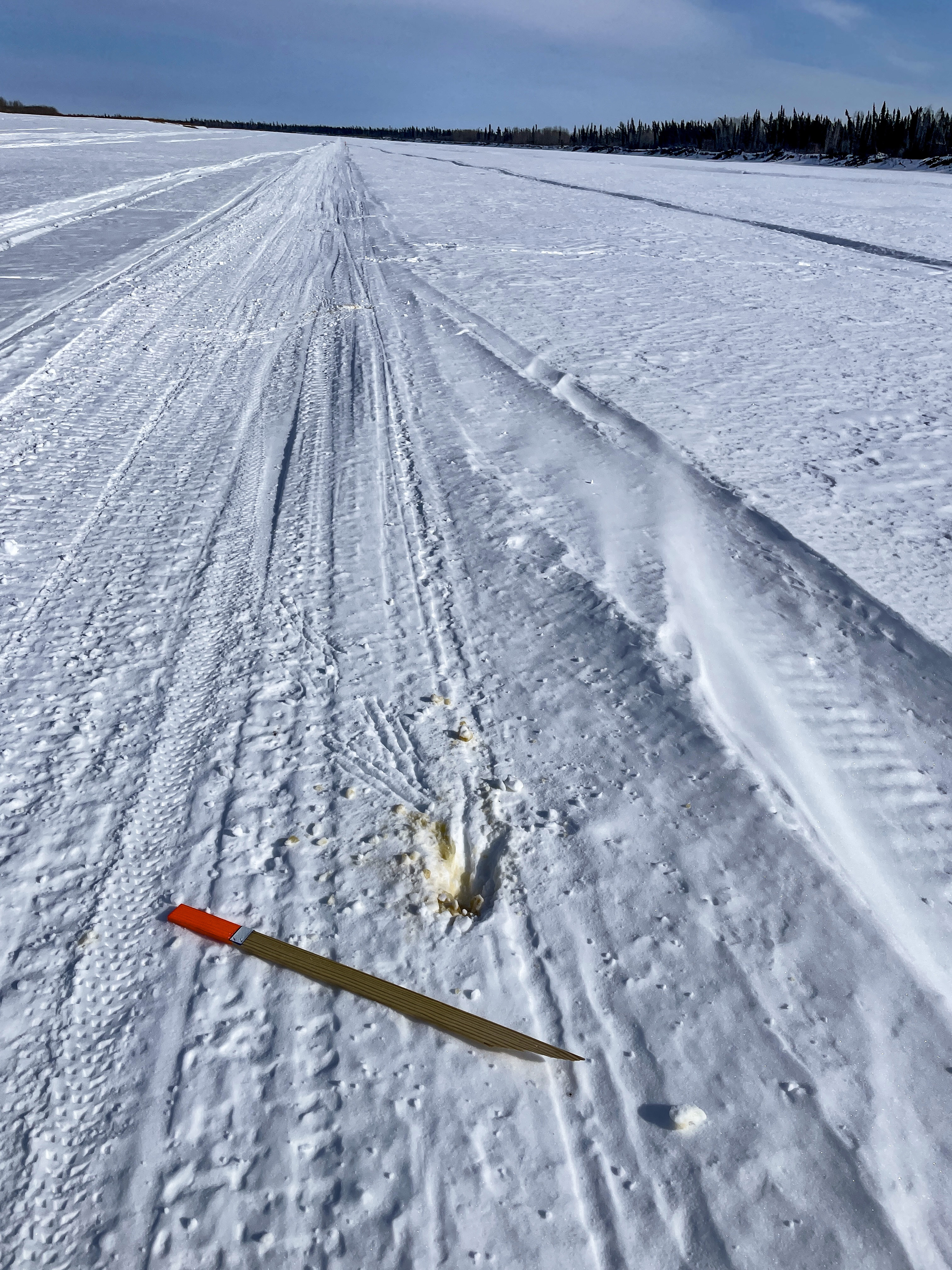 From the white plain of the big river, a half-mile from either spruce shore and hours from Kaltag, I satellite-texted Chris. Please, two village-store pizzas and some Cokes. He secured them. A couple hours later, Forest and I murdered them.
