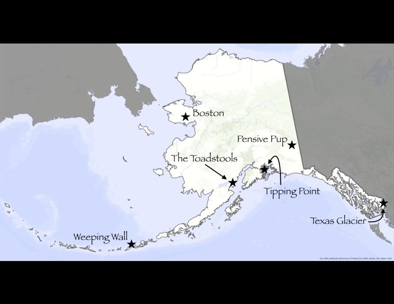 Even Texas, with 10 namesakes — including a glacier — appears on the map more times than Alaska.
