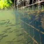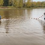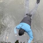 UPPER CHENA RIVER — On this rainy September afternoon, Erik Schoen vacuums water from a backwater slough. The clear flow runs through a plastic tube and into a jar.