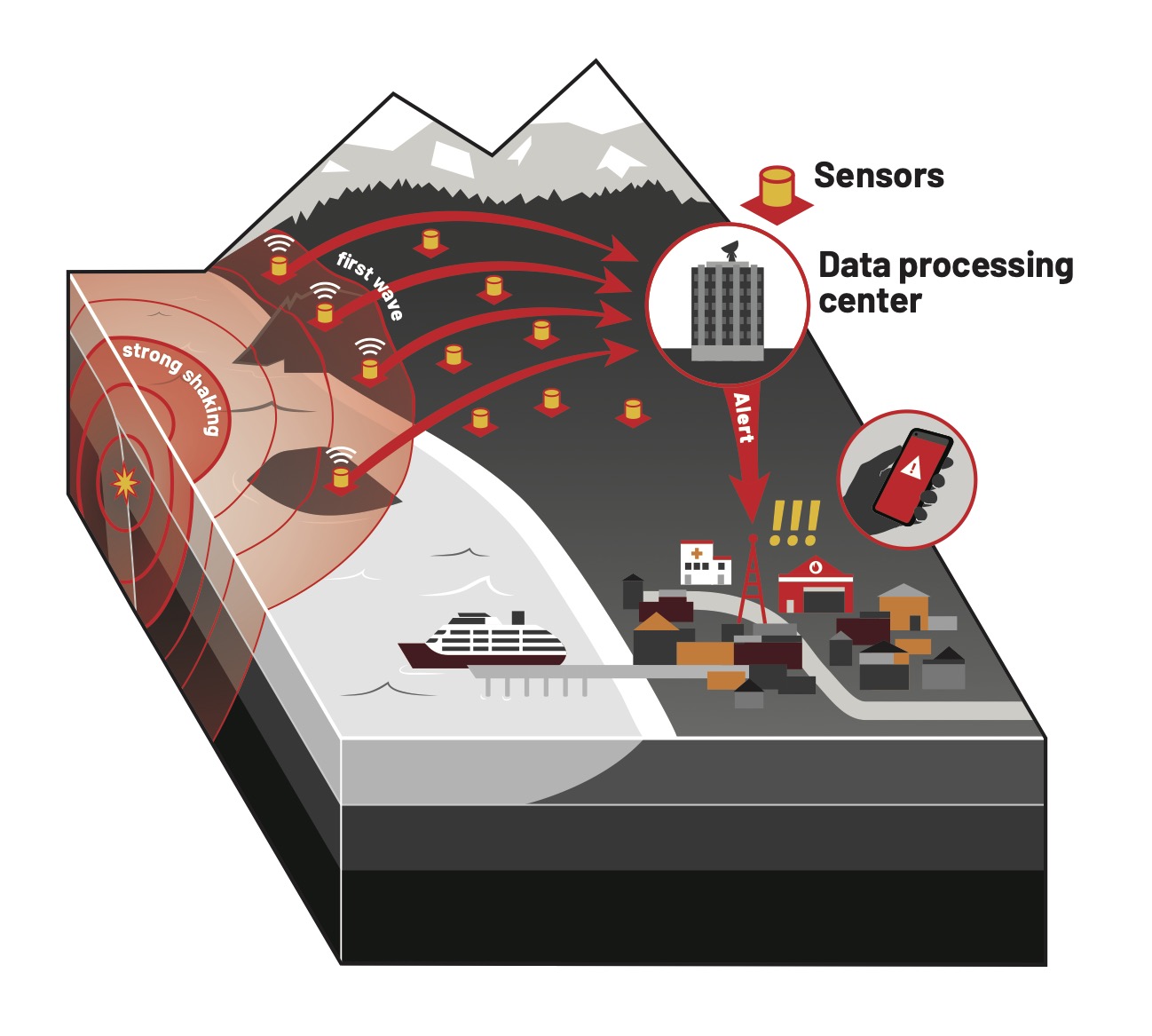 The system then quickly estimates the quake’s location and magnitude. That allows alerts to be sent before the slower, more-damaging secondary waves, or S-waves, arrive.